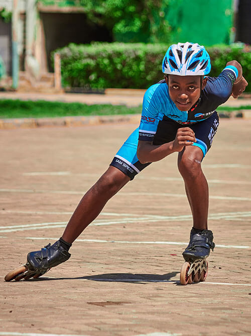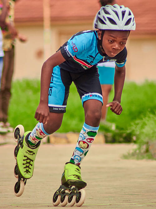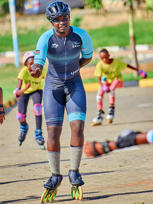Kevin Anekeya is an accomplished inline speed skater and the WUR Skates Brand Ambassador for Africa. Passionate about using sport for good, Kevin started the club to uplift his community by offering youth a chance to grow, compete, and thrive through structured skating programs.